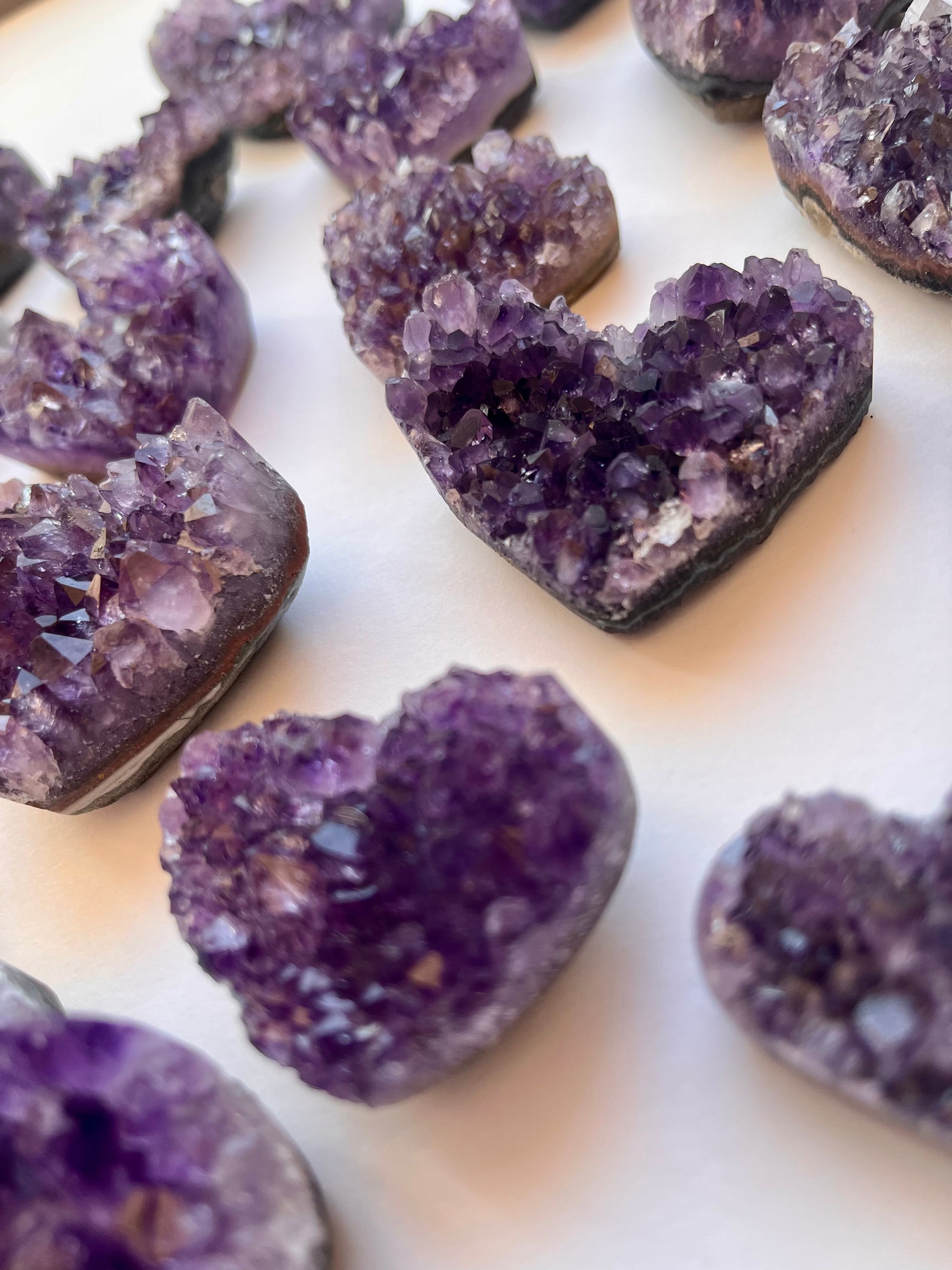 Amethyst is a type of quartz that exhibits shades of purple due to the presence of iron and other trace elements within the crystal. It can be found in a variety of shades, from pale lilac to rich, deep purple, with some stones showing red or blue undertones.