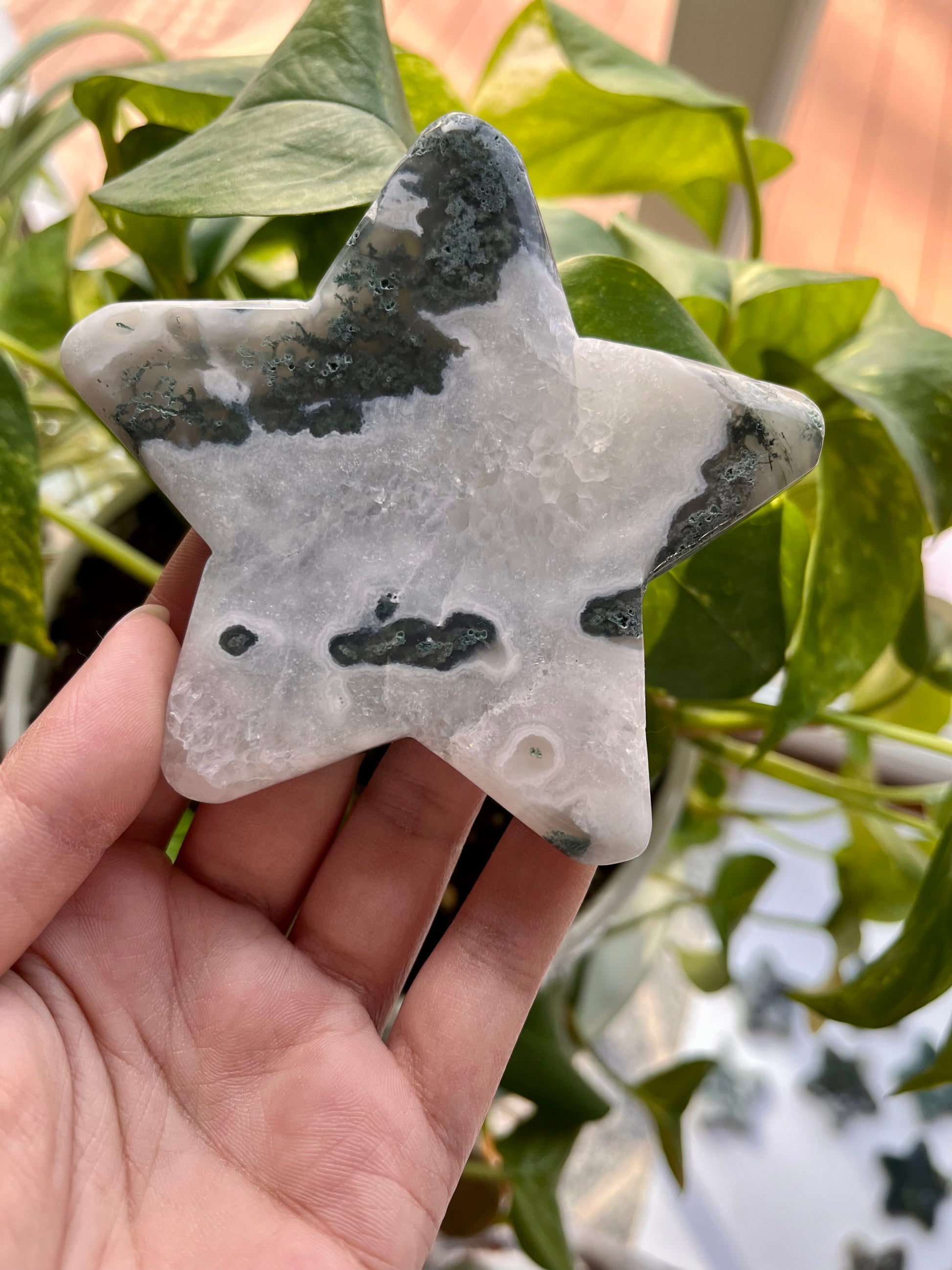 Moss Agate is a beautiful and unique form of agate that features intricate patterns resembling moss or vegetation. Unlike traditional agate, Moss Agate does not have the banding commonly associated with the stone. Instead, it showcases natural inclusions of minerals like iron, manganese, or copper, which form the "mossy" patterns that make each stone one-of-a-kind.